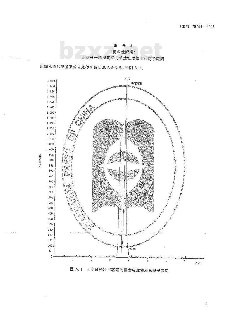 称取5g试样(猜确到0.01)置于50mL具密坡璃离心管中,加人0.5/mL内标甲基独的松龙(6-alpha-methyiprednisolone)标准工作榕液20ul.加入10mL0.3mnl/L,氮氧化钠溶液,在液体泥匀露上混甸1min,加20mi乙酸乙,用均质器均质1min,在振荡器振荡20min:以3000r/min离心5nin.取上清液过链有25g无水硫酸钠的简形滑斗-率染形瓶中。再用20mE乙酸乙酯提取一次,过无GB/T 20741-2006