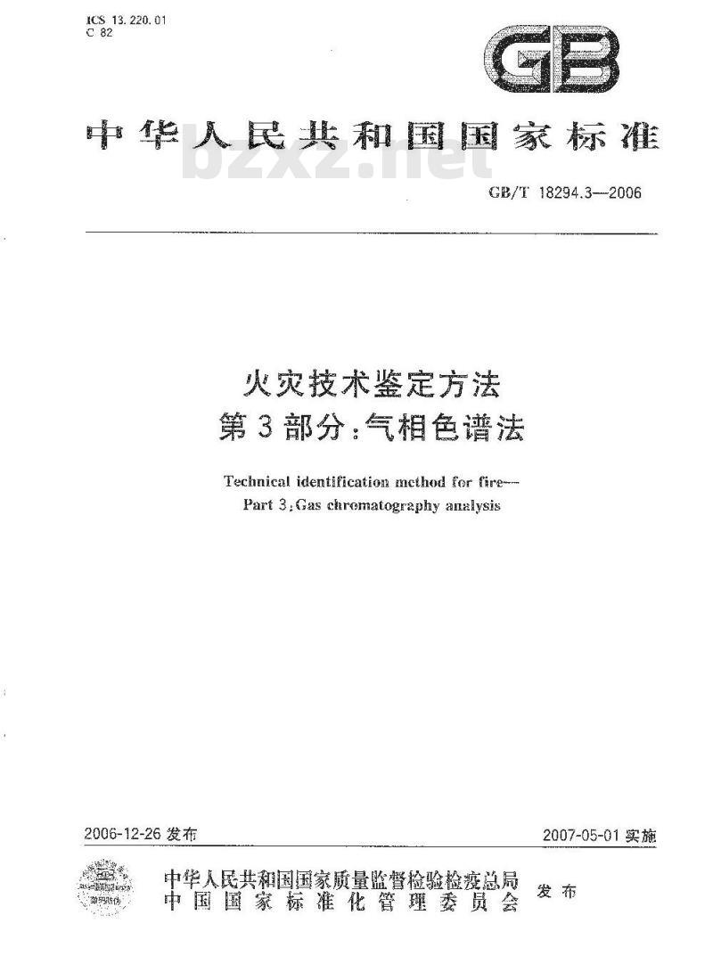 - GB/T 18294.3-2006 火灾技术鉴定方法 第3部分:气相色谱法