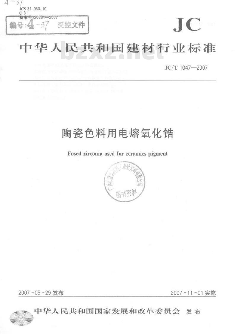 - JC/T 1047-2007 陶瓷色料用电熔氧化锆