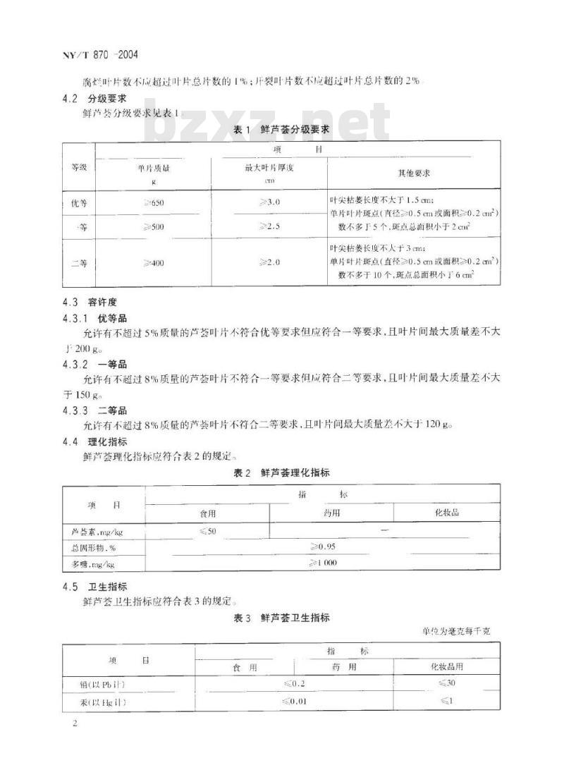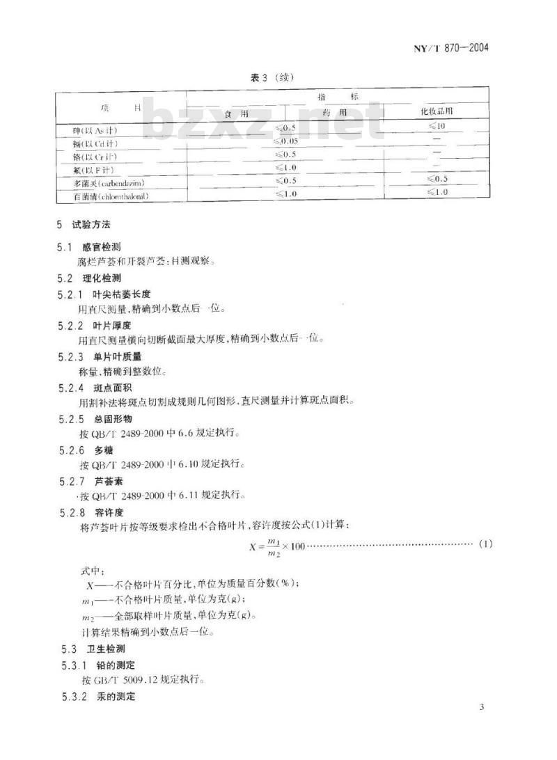 腐烂芦荟和开裂芦荟:月测观察。5.2理化检测免费标准下载网bzxz