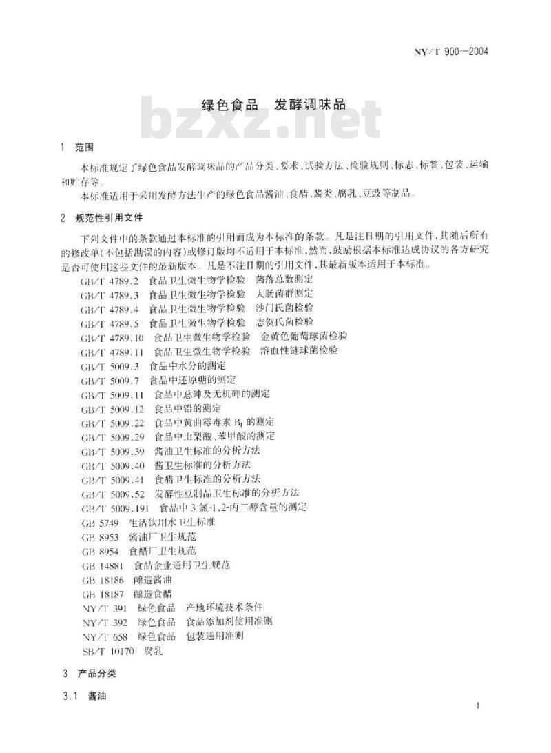 - NY/T 900-2004 绿色食品 发酵调味品