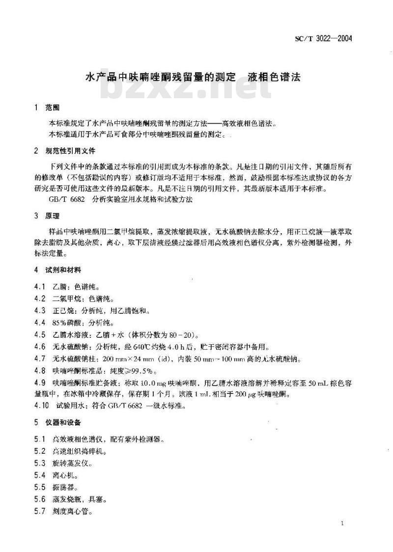 - SC/T 3022-2004 水产品中呋喃唑酮残留量的测定 液相色谱法