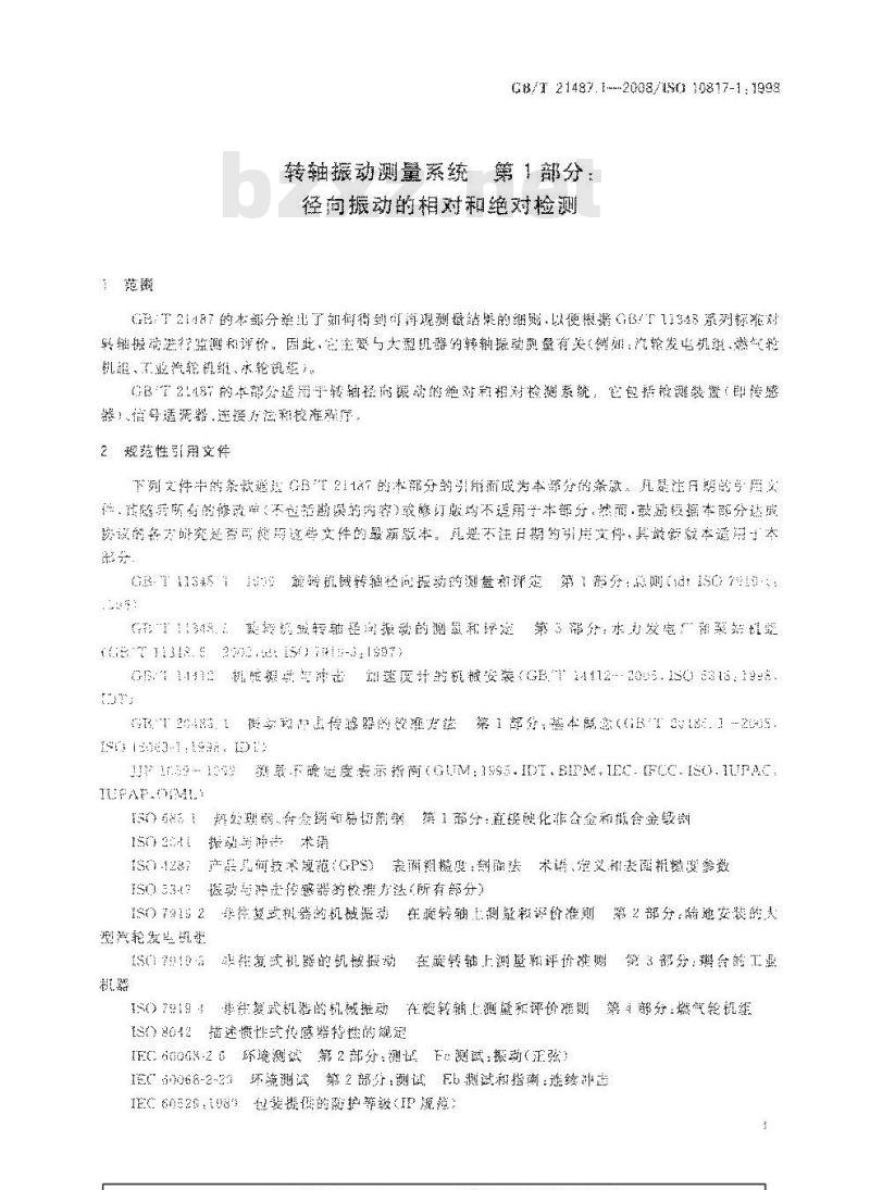 - GB/T 21487.1-2008 转轴振动测量系统 第1部分:径向振动的相对和绝对检测