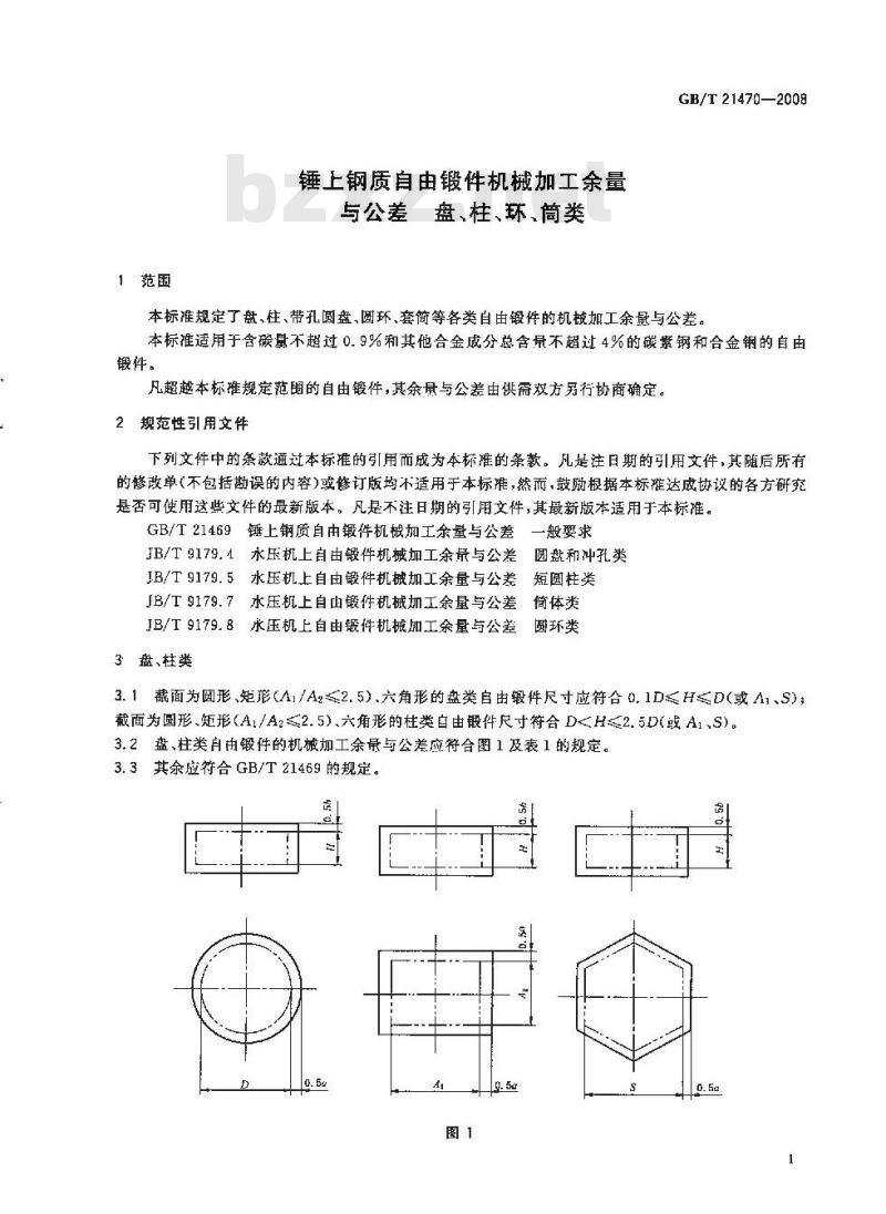 - GB/T 21470-2008 锤上钢质自由锻件机械加工余量与公差 盘、柱、环、筒类