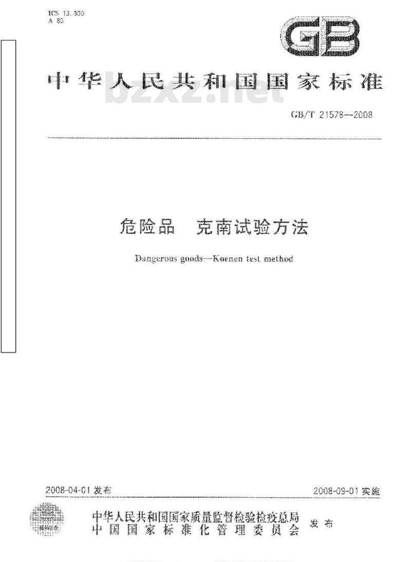 - GB/T 21578-2008 危险品 克南试验方法