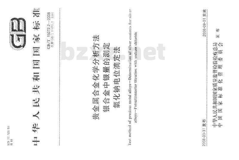 - GB/T 15072.2-2008 贵金属合金化学分析方法 银合金中银量的测定 氯化钠电位滴定法