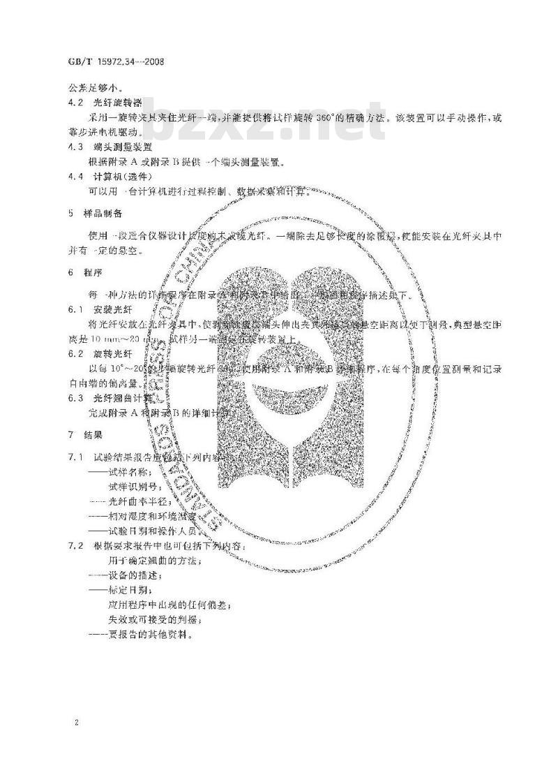 - GB/T 15972.34-2008 光纤试验方法规范 第34部分:机械性能的测量方法和试验程序 光纤翘曲