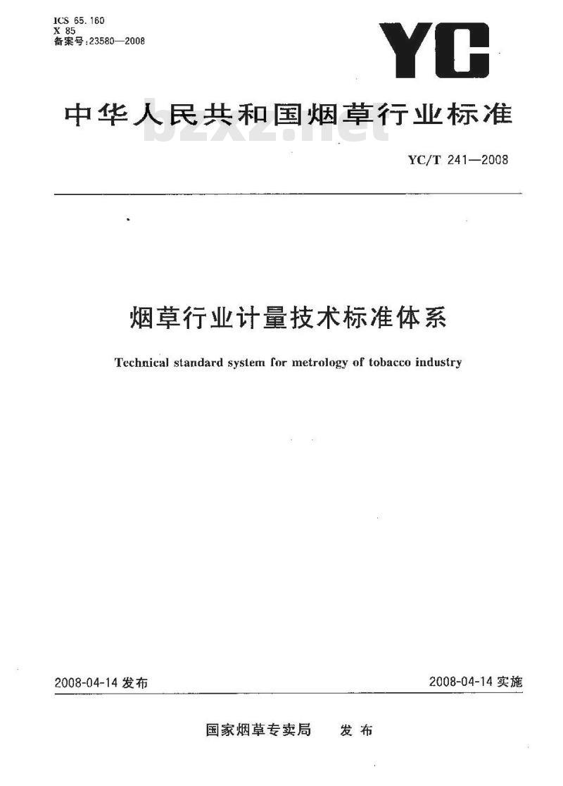 - YC/Z240-2008 烟草及烟草制品标准体系