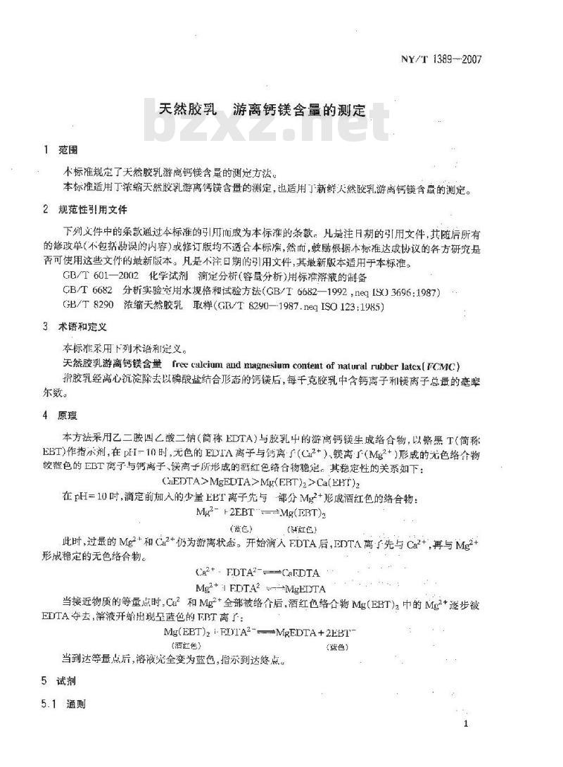 - NY/T 1389-2007 天然胶乳 游离钙镁含量的测定