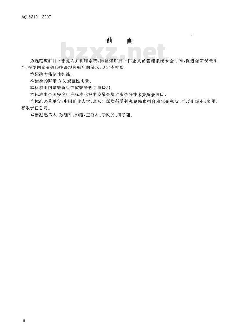 - AQ 6210-2007 煤矿井下作业人员管理系统通用技术条件