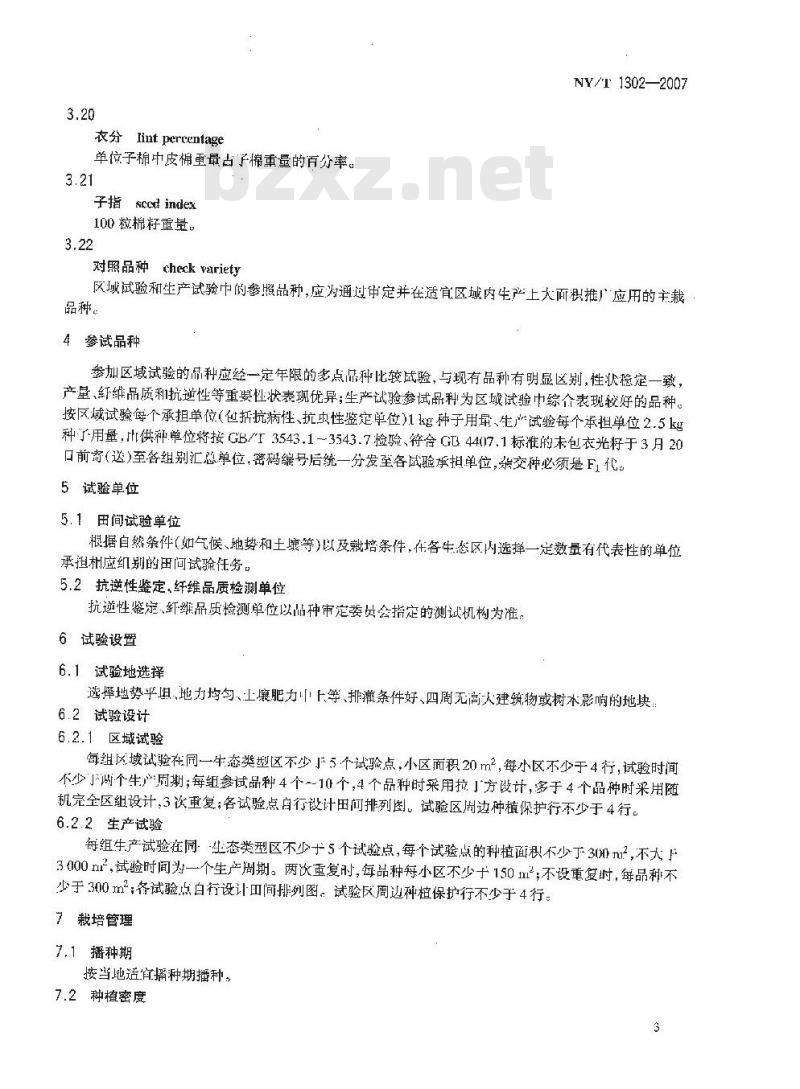 - NY/T 1302-2007 农作物品种试验技术规程 棉花