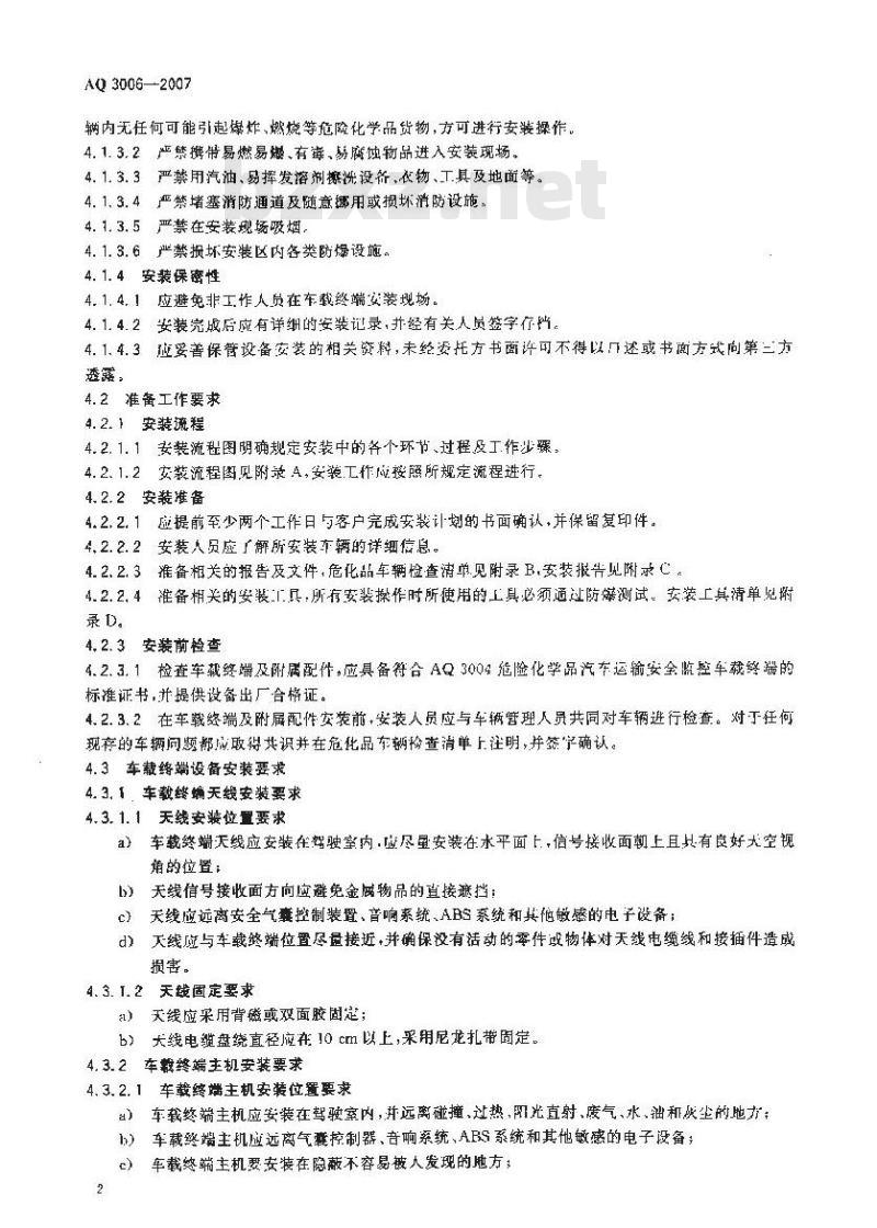 - AQ 3006-2007 危险化学品汽车运输 安全监控车载终端安装规范