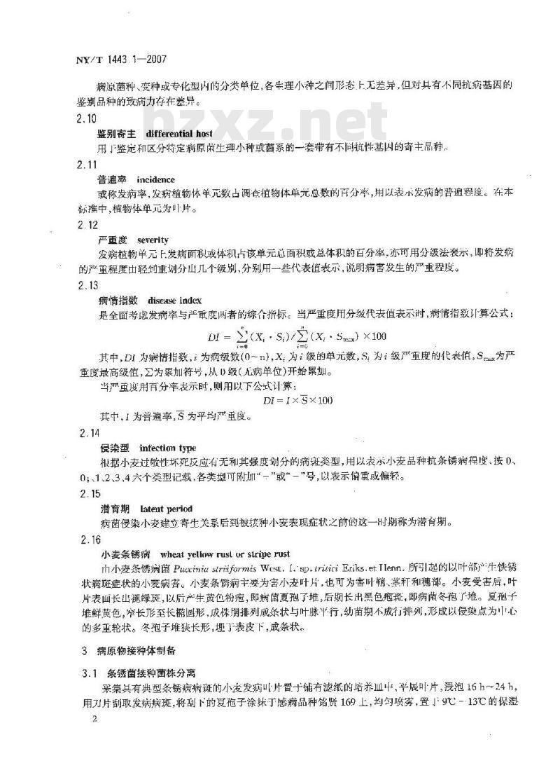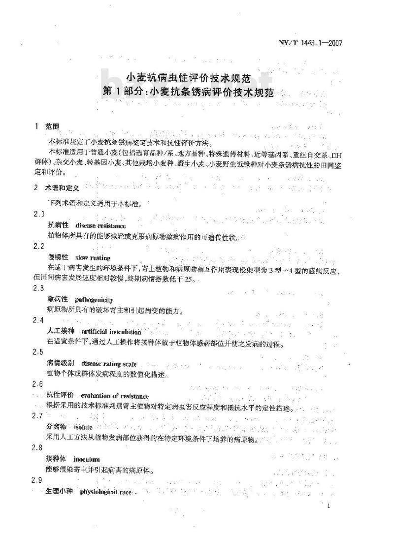 - NY/T 1443.1-2007 小麦抗病虫性评价技术规范 第1部分:小麦抗条锈病评价技术规范