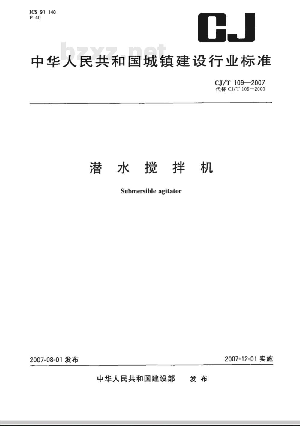 - CJ/T 109-2007 潜水搅拌机