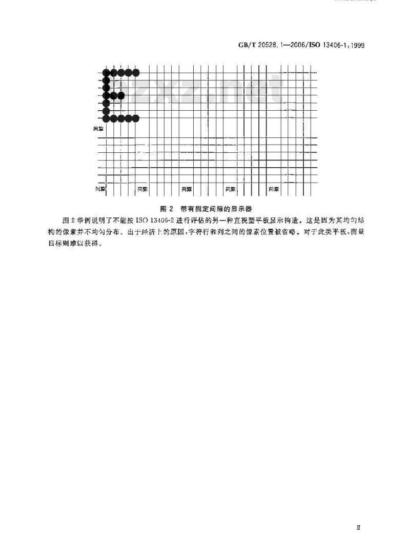 I5O13406-2阐述直视型平板显示器的人类工效学问题。其涵盖了1S09241-3,[SO 9241-7和ISO9241-8的人类工效学主题。ISO13406-2中的要求和测量针对具有均匀间隔和结构化像素的平板,此外,平板宜大到足以能至少显示三个测册目标,每个目标至少400像素,且目标之间不重叠。87