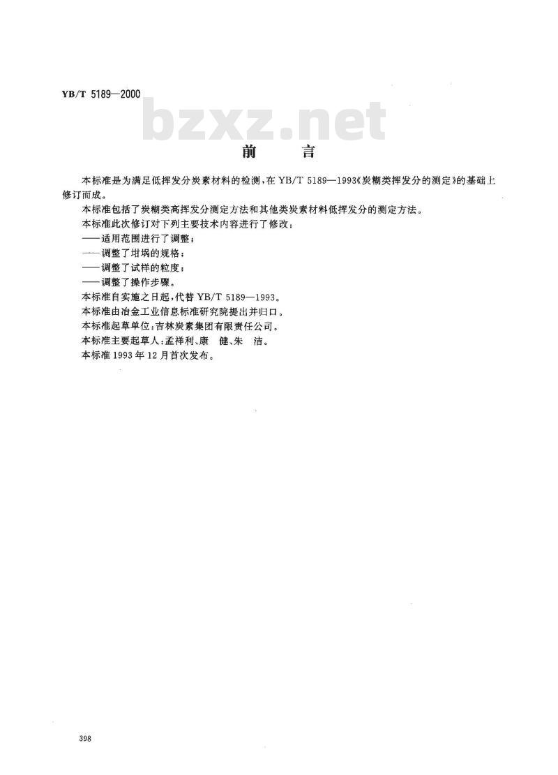 本标准是为满足低挥发分炭素材料的检测,在YB/T5189—1993《炭糊类挥发分的测定》的基础上修订而成。