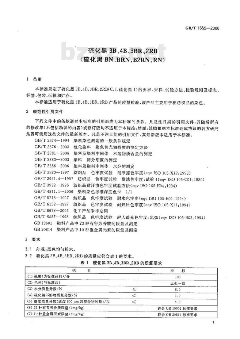 - GB/T 1655-2006 硫化黑3B、4B、3BR、2RB(硫化黑BN、BRN、B2RN、RN)