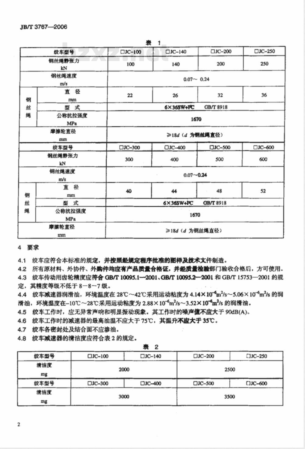-基本参数中增加了JC-100、口JC-400、口JC-600三种规格一摩擦轮直径改为不小于18d(d为钢丝绳直径):一取消了“质量保证”条款: