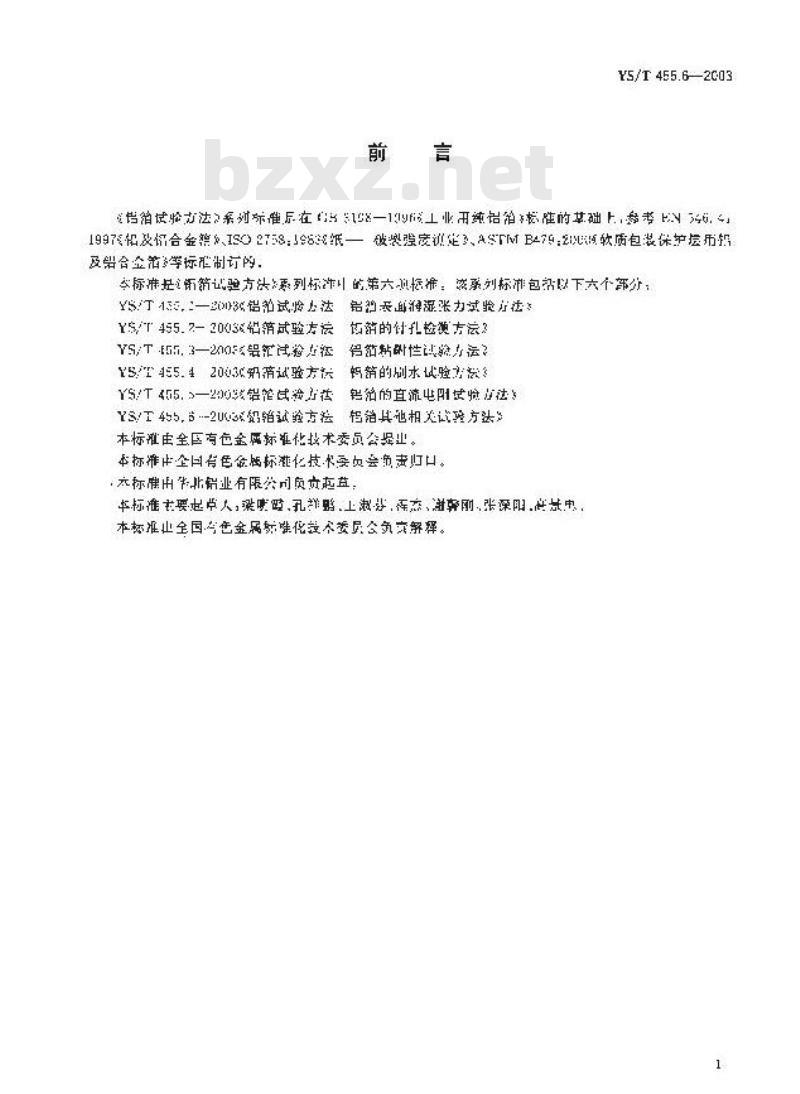 - YS/T 455.6-2003 铝箔试验方法 第6部分 铝箔其他相关试验方法