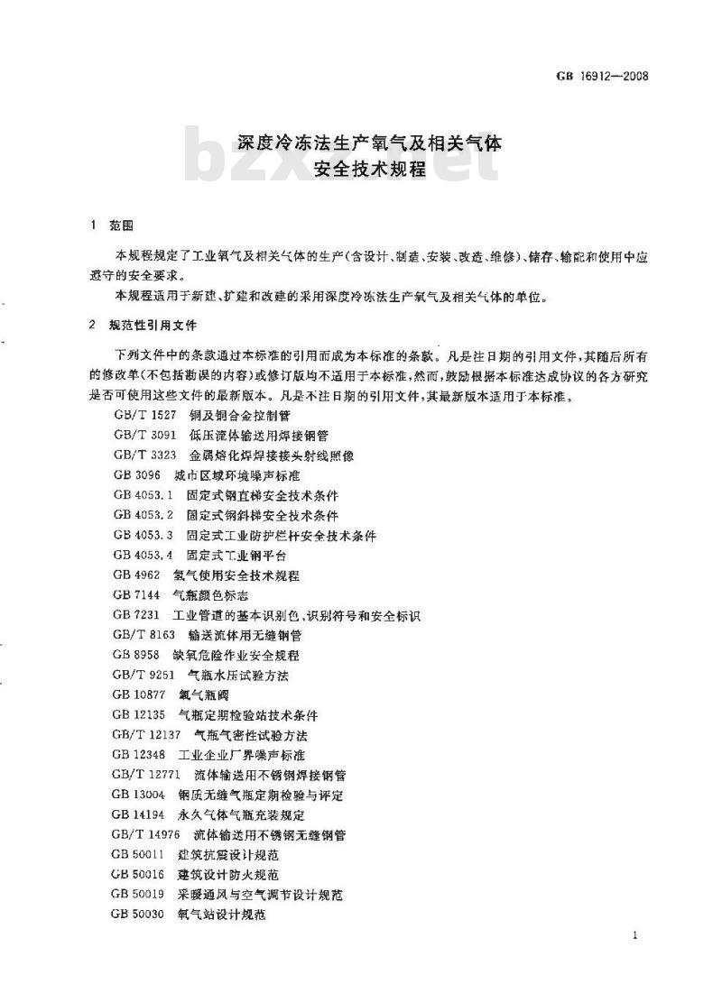 - GB 16912-2008 深度冷冻法生产氧气及相关气体安全技术规程