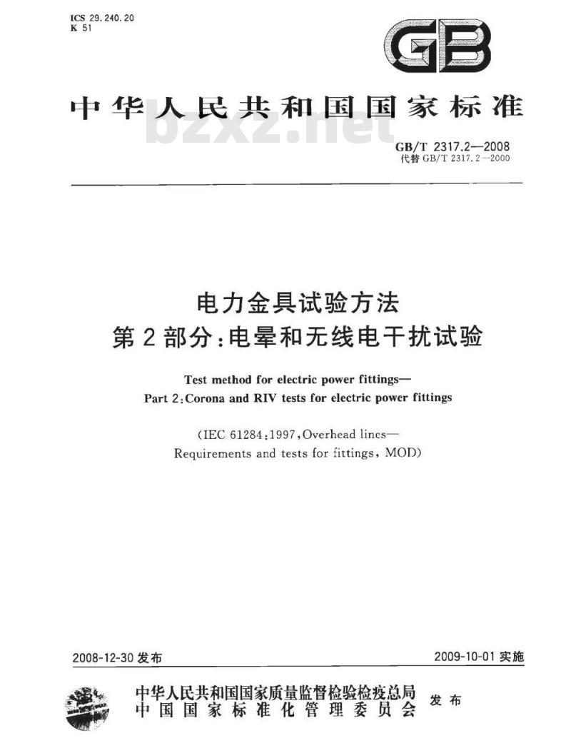 - GB/T 2317.2-2008 电力金具试验方法 第2部分:电晕和无线电干扰试验