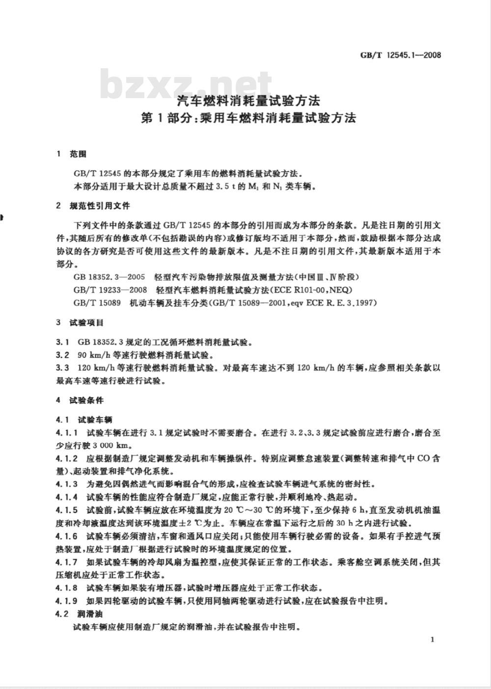 - GB/T 12545.1-2008 汽车燃料消耗量试验方法 第1部分:乘用车燃料消耗量试验方法