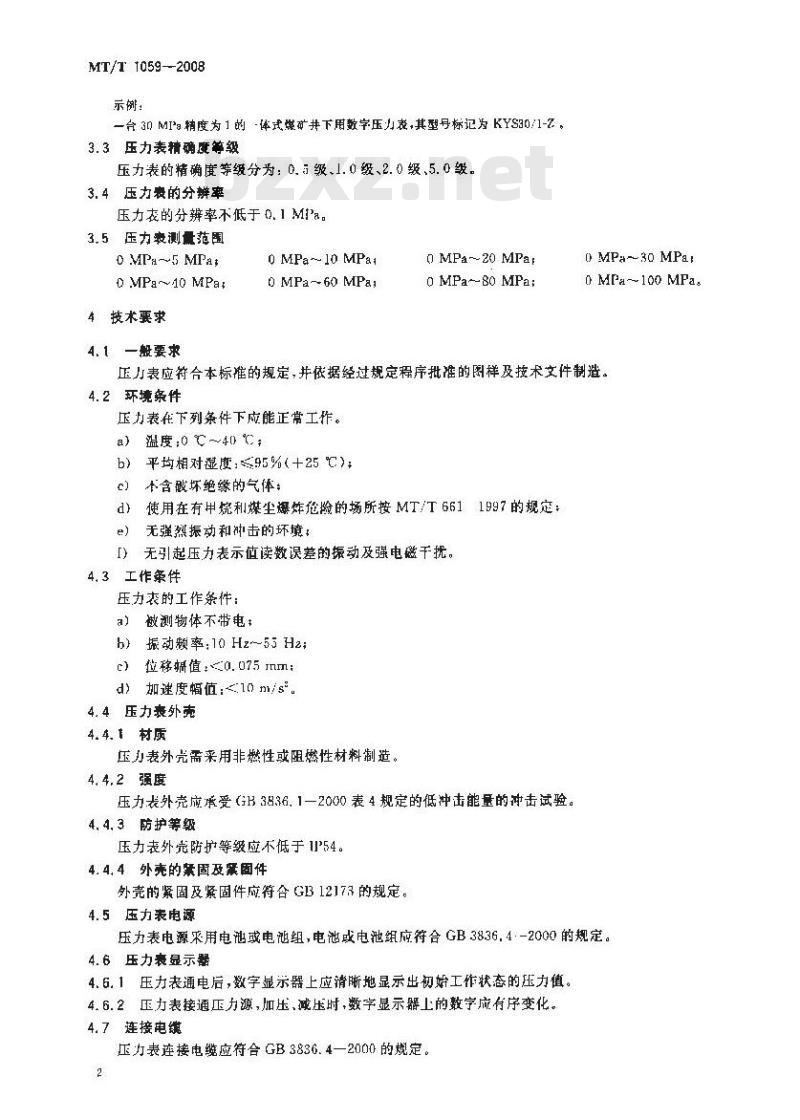 - MT/T 1059-2008 煤矿井下用数字压力表