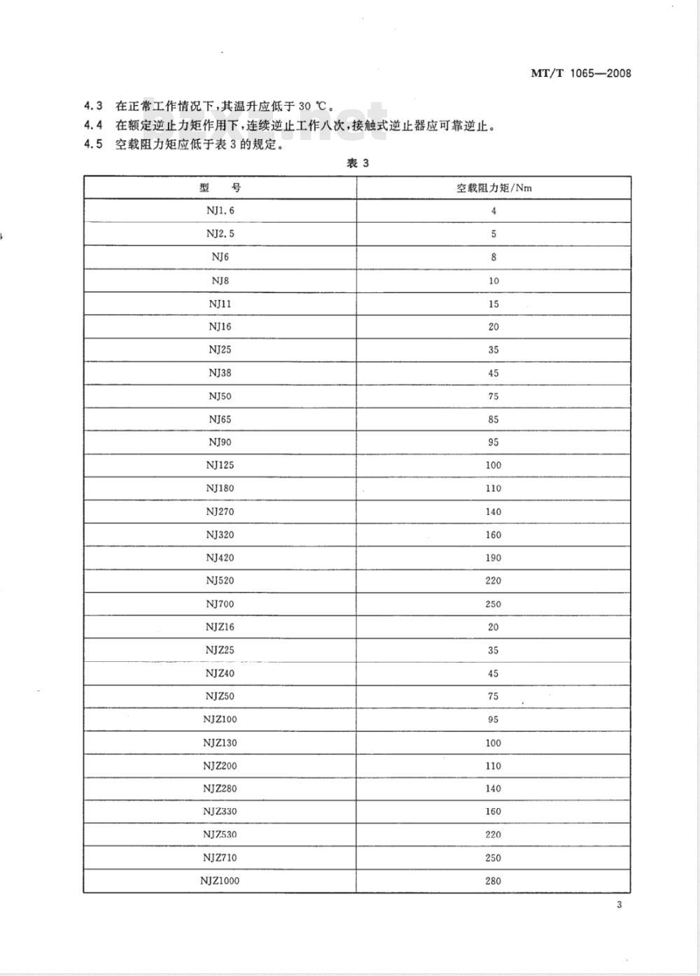 空载阻力矩应低于表3的规定。