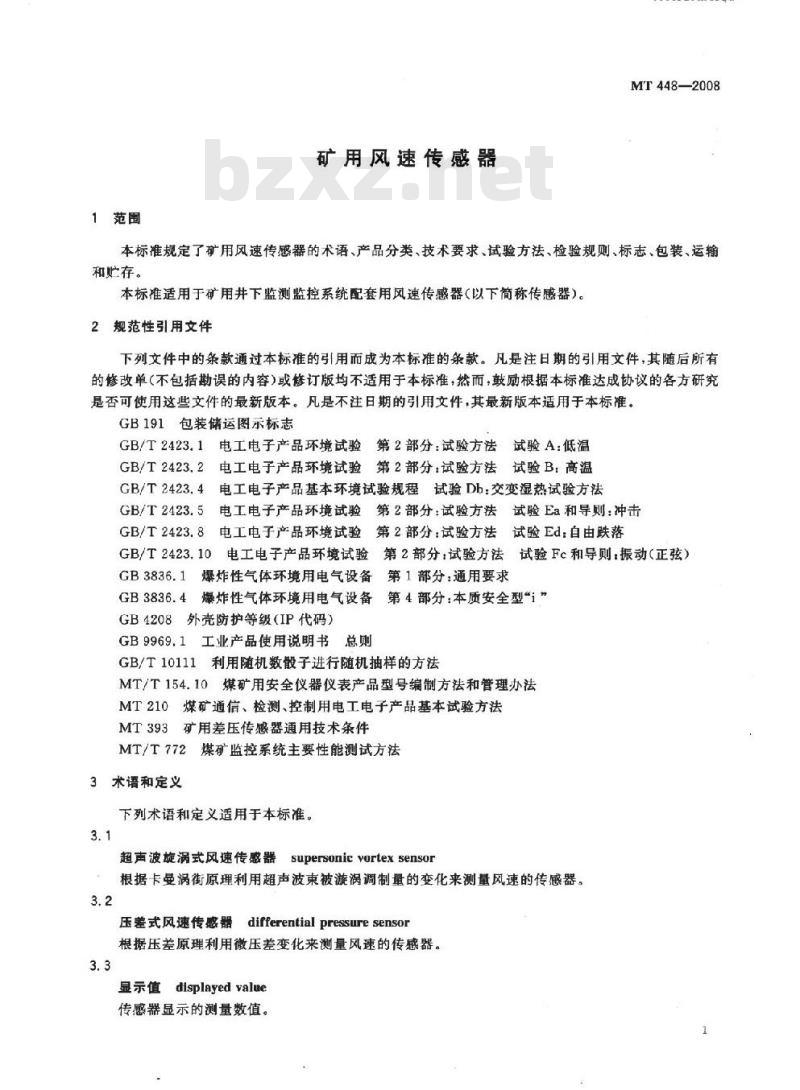 本标准适用于矿用井下监测监控系统配套用风速传感器(以下简称传感器)。2规范性引用文件