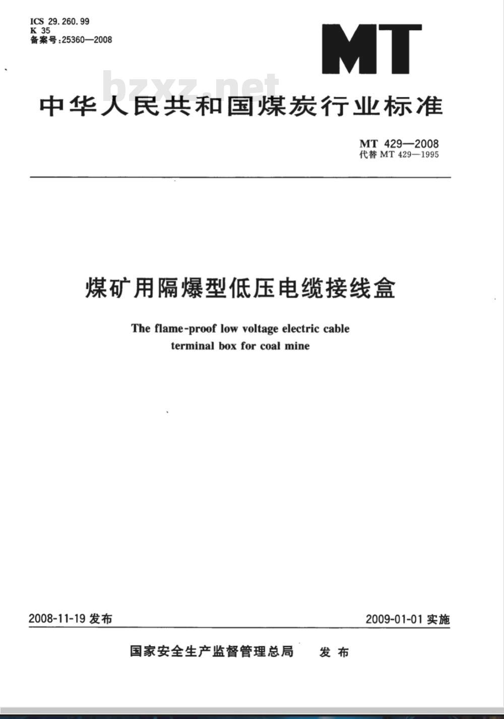 - MT 429-2008 煤矿用隔爆型低压电缆接线盒