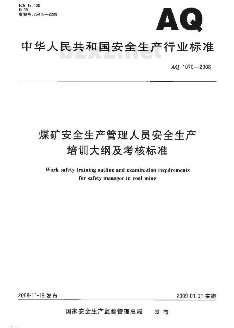 - AQ 1070-2008 煤矿安全生产管理人员安全生产培训大纲及考核标准