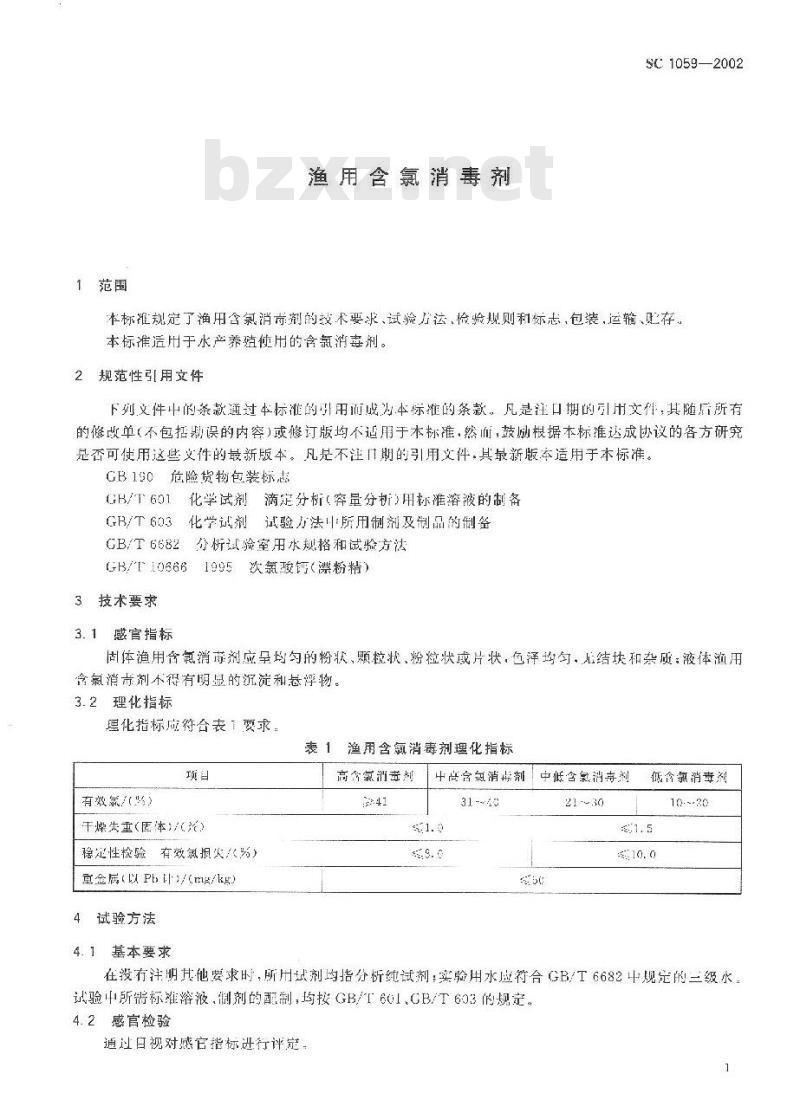 本标准规定了渔用含氯消寄剂的技术要求,试验方法,检验规则和标志,包装,运输、见存,本标准适用于水产养殖使用的含氯消毒剂。2规范性引用文件