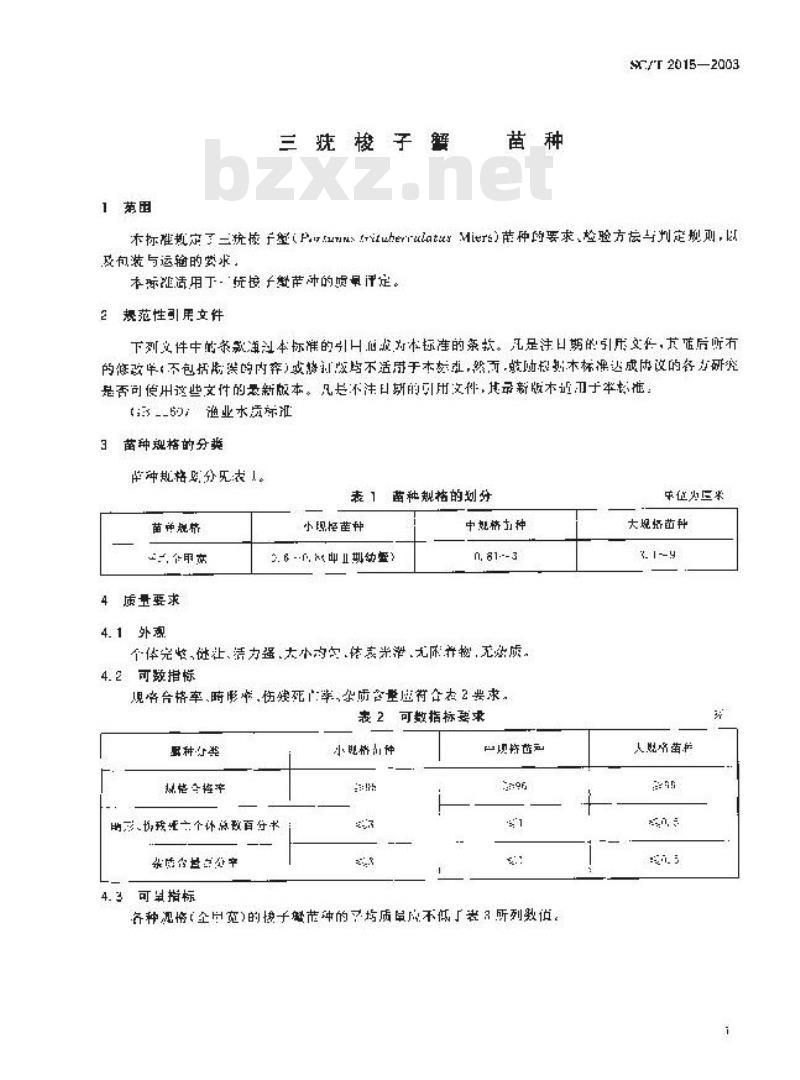 - SC/T 2015-2003 三疣梭子蟹 苗种