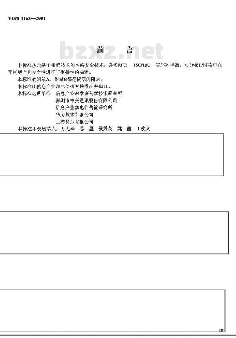 不同层:安全性进行了他架性的范述。本标准附求2、附求B都是提示的附录。本标准出信息产业部电信研究院缇出关归口。卡标准危草单位:信息产收部缴诺科学技术研究所深圳市中兴通讯股份有限公页