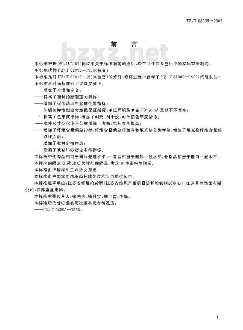 本标准根据WT/T协议中关于标确制定的原按产品生及应用中的实际需要制定,本机准代替FZ/Te2095—J州被会本准足对F7/T6211519934被套的维订·修订过中参考了HZ:31005—15912筛理制品本探准柜划原标数主要政变效下:增加了术语和定义;