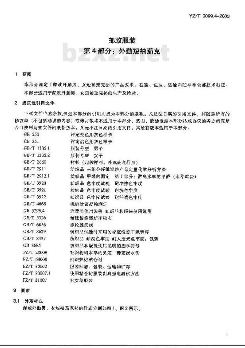 - YZ/T 0099.4-2003 邮政服装 第4部分:外勤短袖茄克