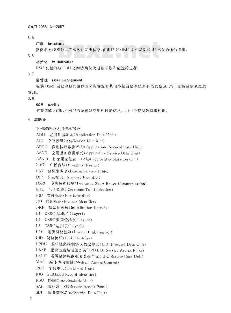 ((B/T 162f3. 2—2006,1S0/IEC 8825-2:2002.IDT)GB/T208392007智能运输系统通用术语第艺部分:紧编码规则(PER)规范CR/T20851.1-2007子收费专用短程通信第1部分:物理层(13/T20851.2·-2007电子收费专用照程信第2部分:数据链路房GB/T20851.1-2007心子收费专用短程通信第4部分:设备应用3术语和定义