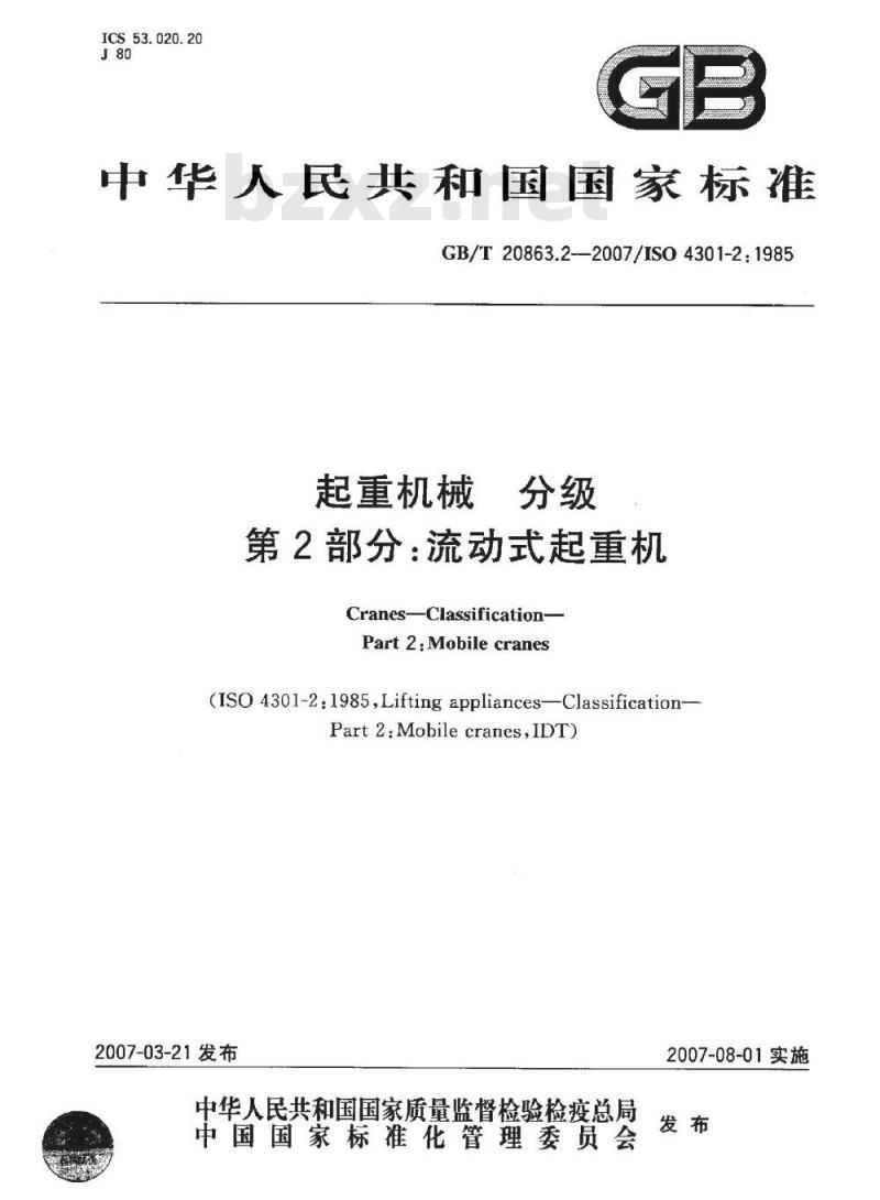 GB/T20863.2-—2007/ISO4301-2:1985起重机械