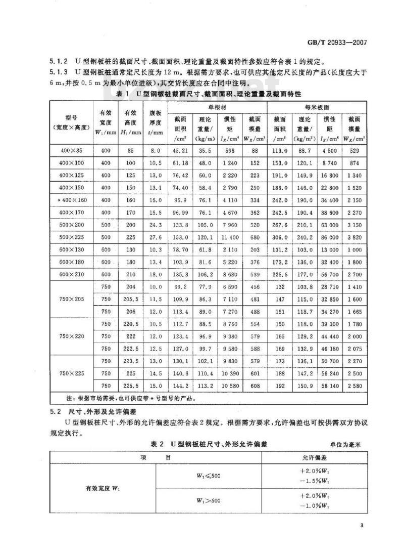 6.5.1U型钢板桩不得有明显的扭转。GB/T20933—2007