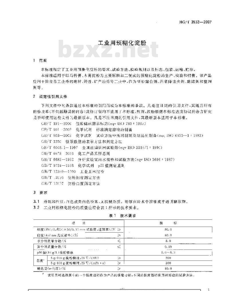 3.1外现和性状:前色或类户色好束,机械杂质。能够在冷水中溶胀成半透明糊状物。3.2工业月预物化淀粉的质量应符合衰1所示的技术要求。表 拉犬要求