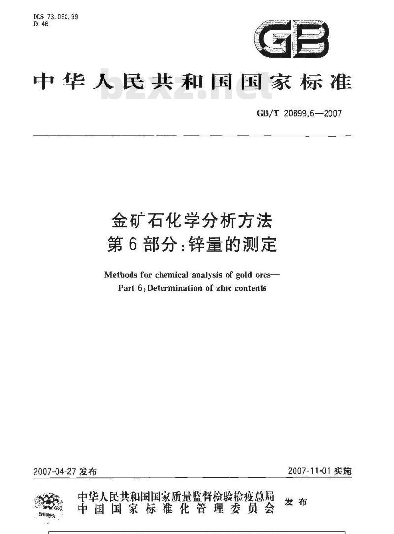 - GB/T 20899.6-2007 金矿石化学分析方法 第6部分:锌量的测定