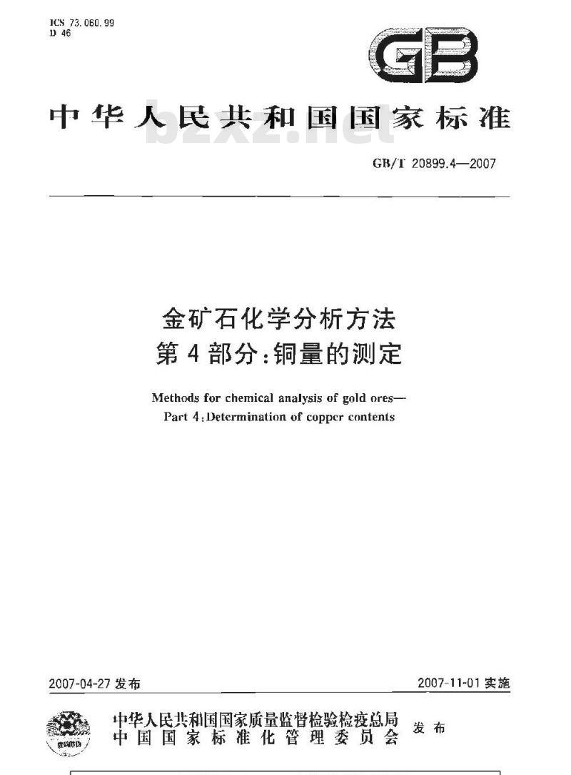 - GB/T 20899.4-2007 金矿石化学分析方法 第4部分:铜量的测定