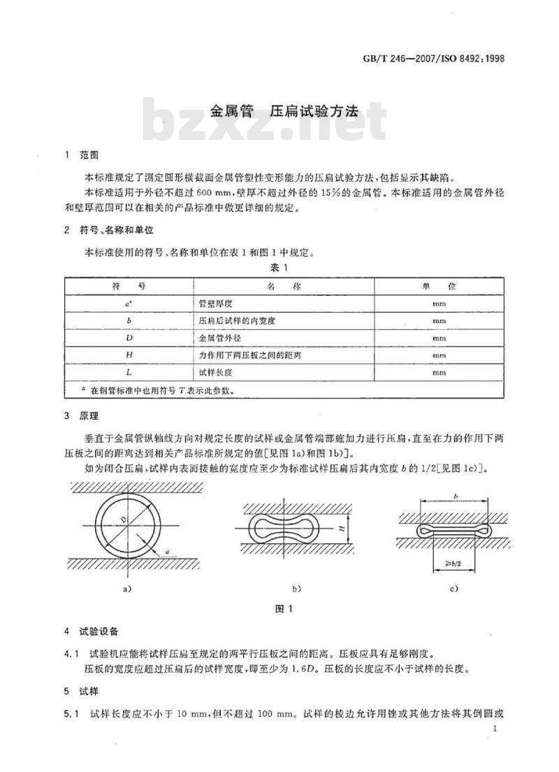 d)将原标准第7章a)参考本国际标准,例如:ISO8492”改为“本标准号”。本标准代替GB/T246—1997《金属管压扁试验方法》,对原标准做了如下修改:扩大了适用范围;