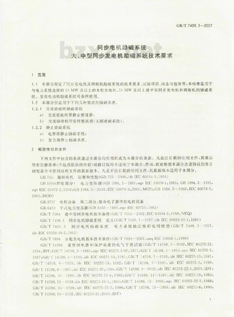 - GB/T 7409.3-2007 同步电机励磁系统大、中型同步发电机励磁系统技术要求