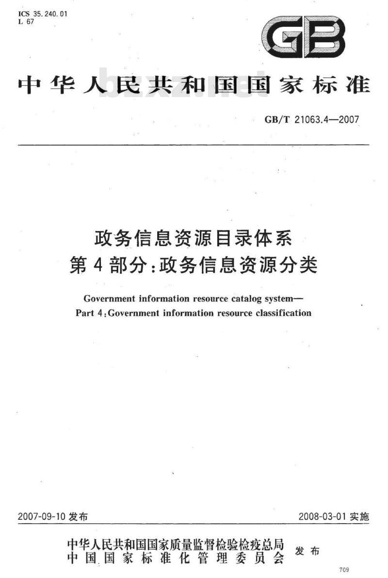 - GB/T 21063.4-2007 政务信息资源目录体系 第4部分:政务信息资源分类