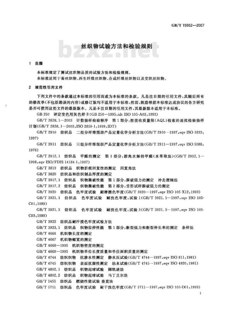 - GB/T 15552-2007 丝织物试验方法和检验规则