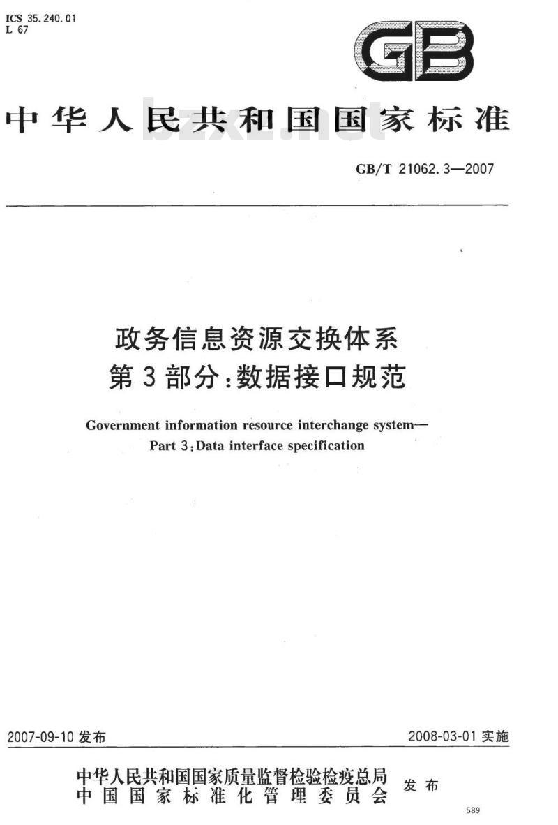 - GB/T 21062.3-2007 政务信息资源交换体系 第3部分:数据接口规范