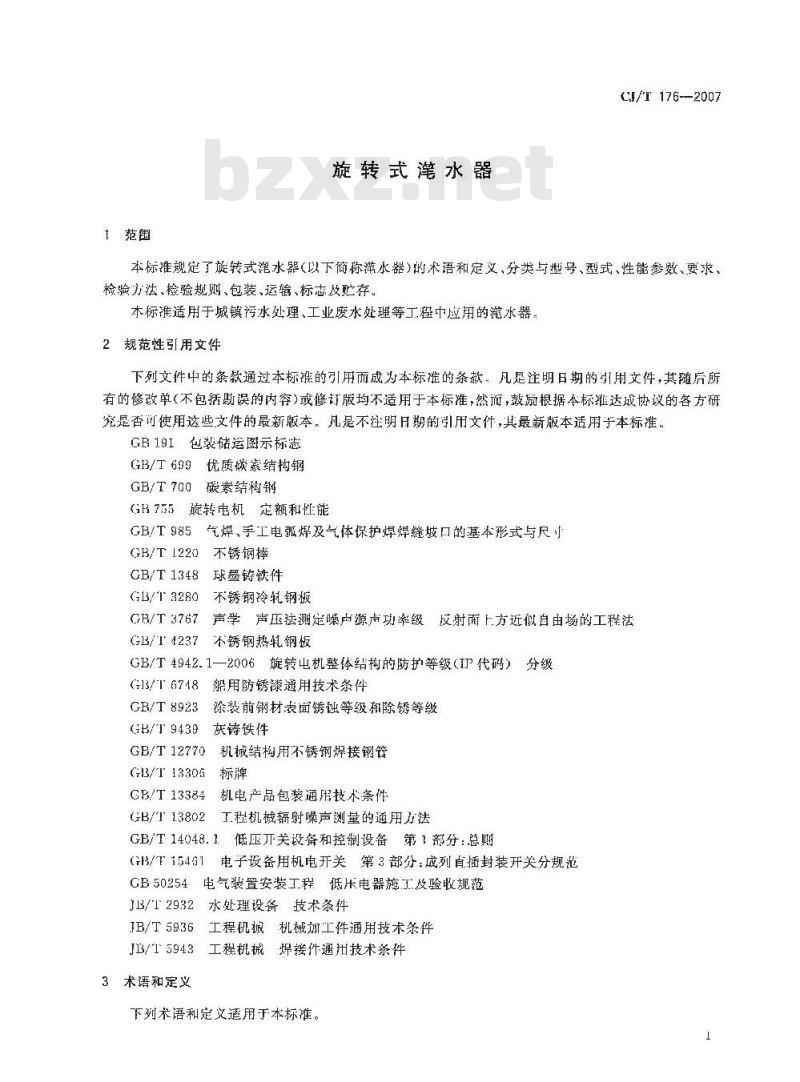 - CJ/T 176-2007 旋转式滗水器