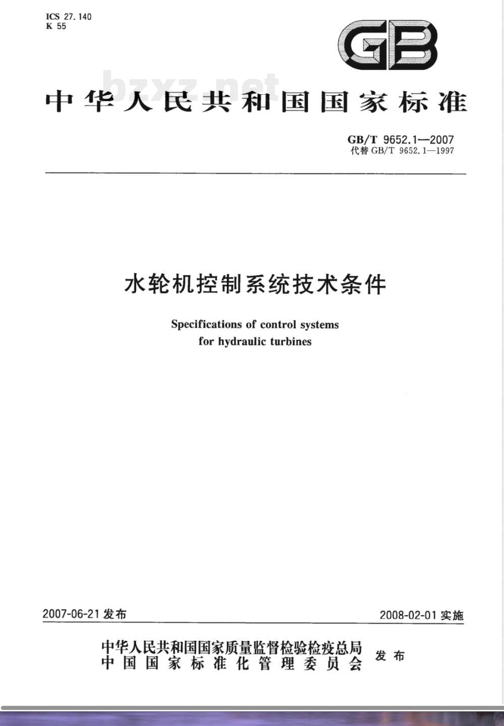 - GB/T 9652.1-2007 水轮机控制系统技术条件