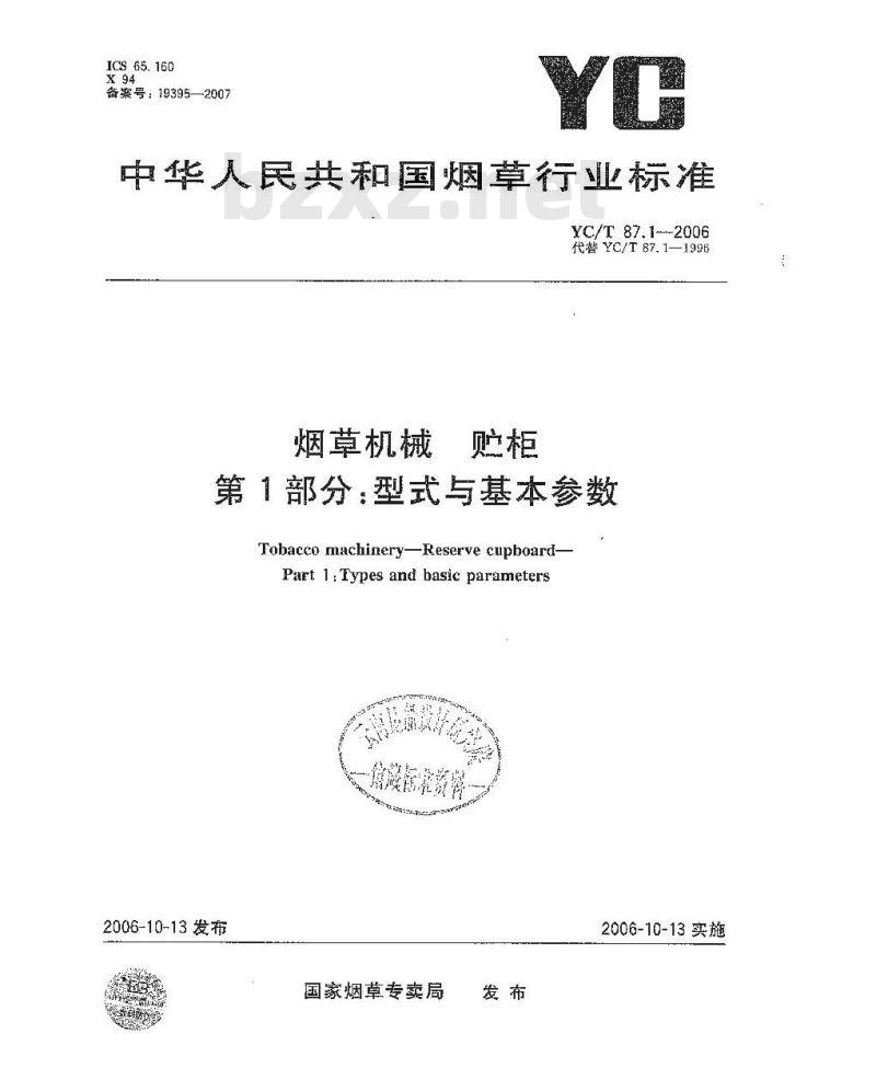 - YC/T 87.1-2006 烟草机械 贮柜 第1部分:型式与基本参数